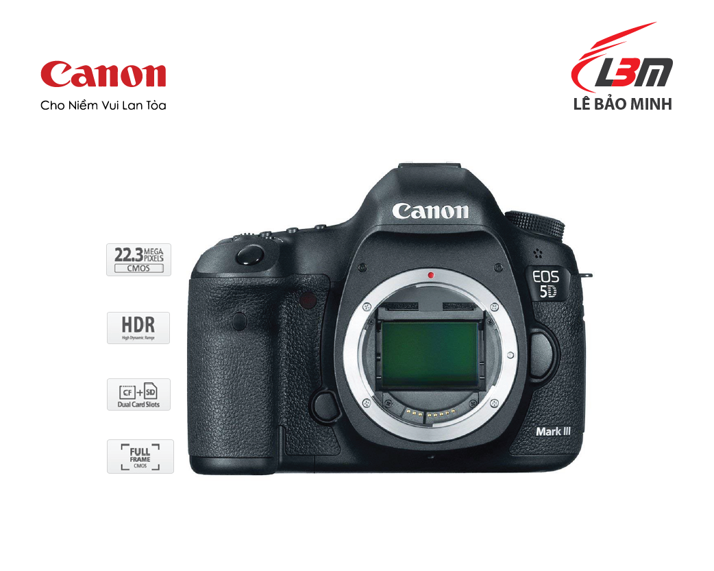 Thân máy EOS 5D Mark III được trang bị bộ cảm biến CMOS toàn khung 22.3MP với khả năng chụp liên tục tối đa 6 hình/giây (fps). Được hỗ trợ bởi chip sử lý hình ảnh tiên tiến DIGIC 5+, máy có khả năng chụp ở tốc độ ISO 25600 (mở rộng tối đa tới 102400). Hệ thống đo nét tự động mới hỗ trợ tới 61 điểm giúp người chụp dễ dàng theo dõi chủ thể với độ chính xác cao và tức thì.